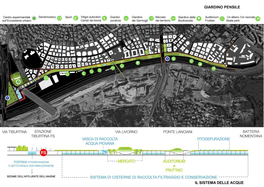 Il progetto – che interessa circa tre ettari e mezzo – punta a trasformare un tratto oggi inutilizzato in uno spazio pubblico continuo, con oltre 500 alberi, giardini tematici, aree sportive, uno skate park, un mercato coperto e perfino un auditorium. Un’operazione di rigenerazione urbana che il Campidoglio ha deciso di prendere sul serio, avviando un approfondimento tecnico per valutarne la fattibilità