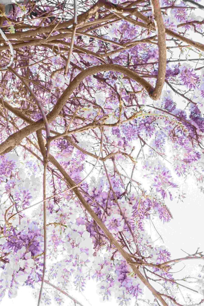 C’è una ragione per cui il glicine si presta così bene a questo tipo di impresa. È una pianta che non passa inosservata: quando fiorisce, lo fa con una forza visiva che non ha equivalenti nel verde urbano. I grappoli penduli, che possono superare il mezzo metro di lunghezza, producono una tonalità che a Milano ha quasi il carattere di un colore identitario. Mastromo la chiama “Viola Milano”: un violaceo chiarissimo che inclina verso il lilla, il malva, il lavanda, con una sfumatura grigia o polverosa che lo rende diverso da qualsiasi altro viola. Un colore che appartiene alla primavera milanese come i tigli appartengono all’estate di certe città tedesche.